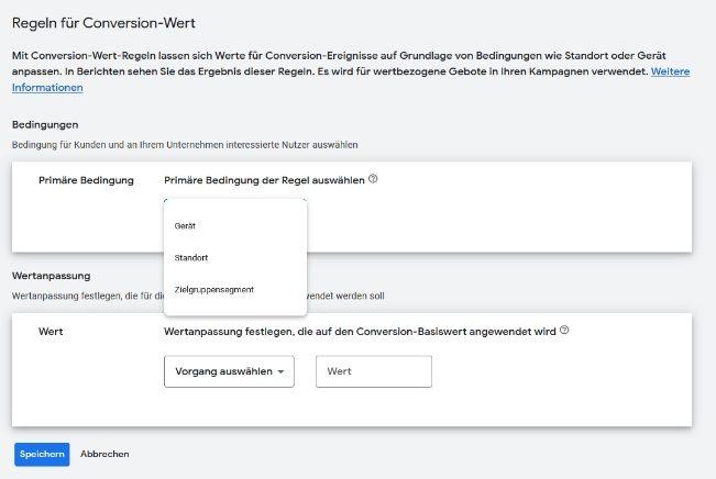 Conversion-Wert-Regeln werden direkt im Google-Ads-Konto angelegt und erfordern keine Änderungen im Tracking.